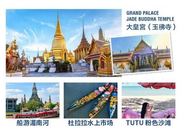 1.【大皇宮 +玉佛寺】早餐后,前往泰國(guó)標(biāo)志建筑【大皇宮】,是泰國(guó)歷代王宮保存最完美、規(guī)模最大、最有民族特色的王官,被稱為“泰國(guó)藝術(shù)大全 ” ,與大皇宮相鄰,是全泰國(guó)唯一沒有僧侶住持的佛寺,供奉著一座價(jià)值連城的國(guó)寶---玉佛 ,是泰國(guó)的三大國(guó)寶之一。2.【長(zhǎng)尾船游湄南河】乘坐泰國(guó)獨(dú)有的長(zhǎng)尾船,暢游在湄南河中。既可以欣賞水上人家又可以放松心情,又可以欣賞到曼谷獨(dú)有的湄南河景色、鄭王廟 。河岸兩邊的景色和風(fēng)光一定會(huì)給您帶來(lái)不一樣的體驗(yàn)。3. 【廊1919】曼谷新晉潮人打卡低,是由必沙布家族里的高官波山舒巴本先生 1850 年型建的 。那時(shí)是火船運(yùn)輸最 鼎盛的時(shí)期,船只往來(lái)川流不息?;鸫瘸俗鳛榇a頭之外,還建有一座媽祖廟,以便出海的船員和附近的居民祭拜。1900 年期間,這里逐漸改為辦公室、住家和倉(cāng)庫(kù)。員工宿舍在樓上,樓下則為辦公室 。在這期間,這里也曾作為中 國(guó)商人協(xié)會(huì)的中心,對(duì)華人商業(yè)發(fā)展起了積極的推動(dòng)作用。4.【國(guó)際人妖秀】 (游覽時(shí)間不少于 60 分鐘) ,欣賞佳麗名媛們傾情奉獻(xiàn)給大家 的精湛演繹,陶醉于紅袖飄舞、婀娜 多姿、千嬌百媚的藝術(shù)神韻而會(huì)感嘆她們的百變神奇。溫馨提示 : 參觀大皇宮玉佛寺時(shí)男士須穿長(zhǎng)褲,女士需穿過膝長(zhǎng)裙,女士不可穿露背、吊帶上衣及超短裙。