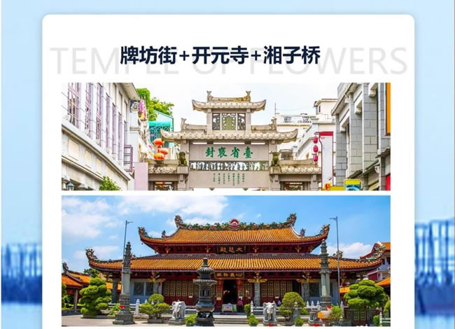 早餐后游覽【開元寺】(游覽時(shí)間不低于30分鐘)位于鯉城區(qū)西街,是中國東南沿海重要的文物古跡,也是福建省內(nèi)規(guī)模較大的佛教寺院。該寺始創(chuàng)于唐初垂拱二年(686年),初名蓮花道場(chǎng),開元二十六年(738年)更名開元寺?,F(xiàn)存主要廟宇系明、清兩代修建,南北長260米,東西寬300米,占地面積78000平方米。【西街】(游覽時(shí)間不低于30分鐘)是泉州較早開發(fā)的街道和區(qū)域,早在宋朝,它就已經(jīng)象征了泉州的繁榮,它還是泉州市區(qū)保存較完整的古街區(qū),保留著大量具有歷史原貌的建筑。前往前往【蟳埔村】(游覽時(shí)間不低于60分鐘),蟳埔村位于福建省泉州市豐澤區(qū)東海社區(qū)的一條小漁村,這里居住的是古時(shí)阿拉伯人的后裔。這里的女人們頭上戴著鮮花做的漂亮的簪花圍,戴著丁香耳墜,穿著大裾衫、寬腳褲,形成了一道獨(dú)特的風(fēng)情,她們和惠安女、湄州女一起并稱福建三大漁女,這里還有別具特色的民居“蚵殼厝”。體驗(yàn)潯埔村地方民俗,風(fēng)土人情?!九抠?zèng)送插花,體驗(yàn)潯埔漁村民俗】隨后前往平潭酒店入住休息。