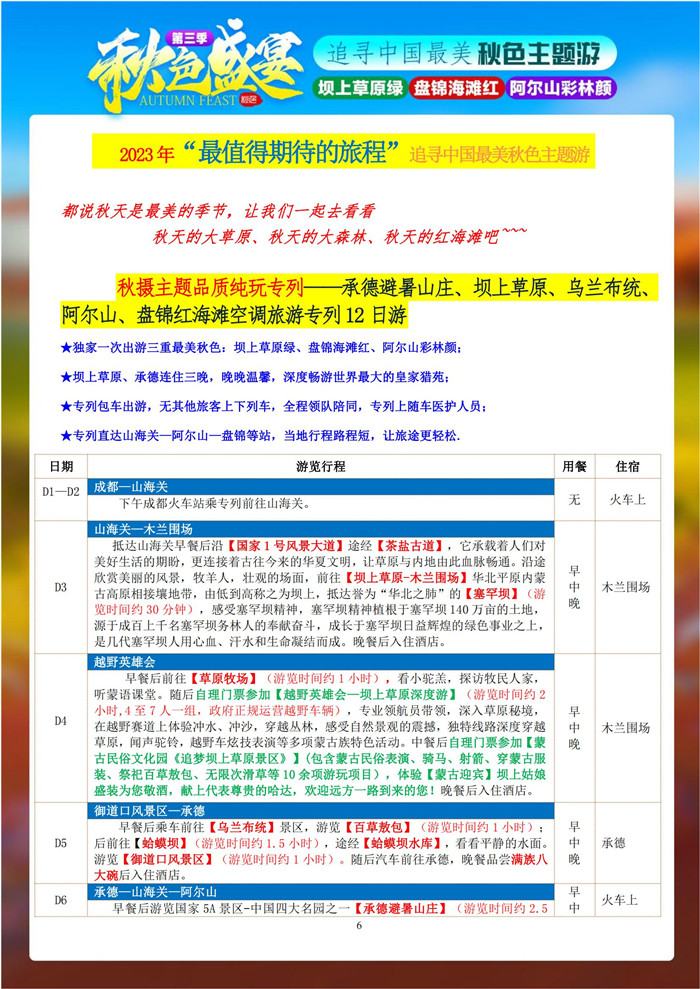 2023年8月16日,綿陽中旅行假日旅行舉行2023年秋攝三絕壩上阿爾山紅海灘空調旅游專列12日游推薦會,主持人熱情洋溢的到場的嘉賓們介紹了追尋中國美秋色主題游“秋色盛宴”第三季純玩空調專列12日游的線路詳細內容。