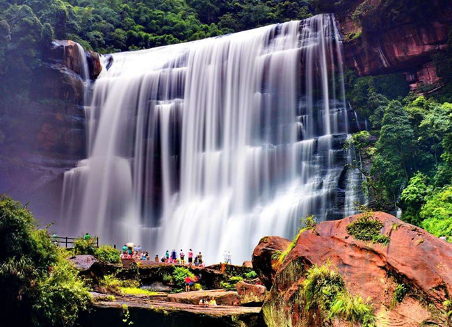 早餐后前往當(dāng)?shù)厣鐣唐妨闶燮髽I(yè)自由活動并領(lǐng)精美紀念品,名特產(chǎn)品(較為著名云上赤水泰和乳膠、逸可瑞斯乳膠等,主要銷售乳膠制品),自由活動后前往【赤水大瀑布】欣賞美譽中國的簾狀瀑布典型代表中洞瀑布。觀氣勢恢弘的赤水大瀑布(寬81米,高76米),是亞洲最大的瀑布,也是“世界丹霞第一瀑”,瀑水從懸崖絕壁傾瀉而下,猶如萬馬奔騰,聲如雷鳴,水霧彌漫,陽光下時見彩虹繽紛,在特定的觀景石上,奇妙的佛光環(huán)隨人移動,一人一環(huán),美不勝收。自由活動后乘車前往【白馬溪景區(qū)】(此景點為旅行社贈送景點,若時間緊湊無法前往請各位旅客諒解,贈送景點不予置換或退費),(白馬溪景區(qū)內(nèi)有玻璃橋、旱滑道等娛樂項目,客人可根據(jù)自身情況自愿選擇自己喜歡的項目參加,報價不含娛樂項目)赤水白馬溪景區(qū)是赤水唯一家主題景區(qū),景區(qū)集有赤水旅游的5大旅游元素;瀑布景觀、丹霞景觀、竹林景觀、石斛觀光、以及活化石桫欏樹。景區(qū)原生植被繁茂,景色怡人,環(huán)境絕佳。是旅游觀光的絕佳勝地,晚餐可自費品嘗(苗家風(fēng)情晚會120元/人),同時觀賞苗家印象激情互動篝火晚會,或自由活動。酒店休息。