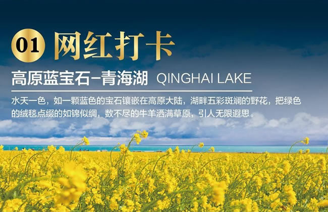 早餐后乘車前往【茶卡鹽湖】(含門票,不含小火車,游覽不低于3小時)茶卡鹽湖,中國的天空之鏡。風光旖旎,景色優(yōu)美。當你踏入茶卡鹽湖的那一刻,就仿佛進入了一個夢幻般的世界。只見湖面平靜如鏡,將天空、云朵、山巒、樹木倒映其中,形成了一幅獨特的水天相接的畫面。這里的鹽層晶瑩剔透,泛著白光,宛如一面巨大的鏡子,將周圍的一切都映照得清晰可見。漫步湖面如行走在云端之上。茶卡鹽湖是古絲綢之路的重要站點,歷史上是商賈、游客進疆入藏的必經(jīng)之地。湖面上,時而碧波蕩漾,時而有莽莽蒼蒼,集秀麗、壯美于一體,在那里時仿佛靜止般,天地間是一片純凈的白與藍,就像做了一場幻境的夢…這里被國家旅游地理雜志評為“人一生必去的55個地方之一”。贈送參觀青海高原藏寨(免費景點,游覽時間不低于1小時)村寨內(nèi)外到處都是飄揚的經(jīng)幡,領略藏族的風土人情,體會藏族文化的魅力。此為贈送項目,若因客觀原因(例如關閉修整、時間、天氣、道路擁堵等因素)造成無法參觀的,則不退任何費用。參觀中國最美的五大湖泊之首高原明珠—【青海湖二郎劍】(含門票,不含電瓶車,不含游船,游覽不低于2小時)青海湖是我國第一大內(nèi)陸湖泊,也是我國最大的咸水湖。湖面純凈深湛、溫柔恬雅的湖水,滿載著古老而優(yōu)美的傳說,夾帶著文成公主的相思,是如此的波瀾壯闊、恢宏磅礴,漫步清海湖畔,擁一抹晨曦在心,握一縷格桑花的明艷于手,不思前塵,不念過往,心中,只存世事通透的安然......在這里你可以欣賞的水天均呈現(xiàn)青藍一色,藍天白云映襯在湖中,水波蕩漾,海風拂面,站在湖邊拍照,以天、湖、海岸為背影,沉醉高原的藍寶石,感受歲月如水時光靜好。從廣場走到湖邊處,青海湖就在眼前,沿湖邊木制棧道觀湖散步,有幸可看到湖面上的海鷗在天空翱翔。青海湖的美用再多的語言都是無法形容的,左邊蔚藍的湖水,遠處茫茫草原,牛羊成群,徜徉其中,視野開闊,景色優(yōu)美,給您一種心靈的釋放與洗滌。晚住青海湖沿線或西寧。